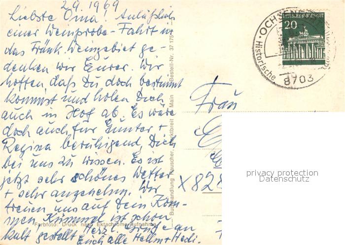 73672116 alte Postkarte Marktbreit Fachwerkhaeuser Rathaus Mainpartie postalisch gelaufen Erhaltung siehe scans [WerneD78] KatCode: 11110009675147