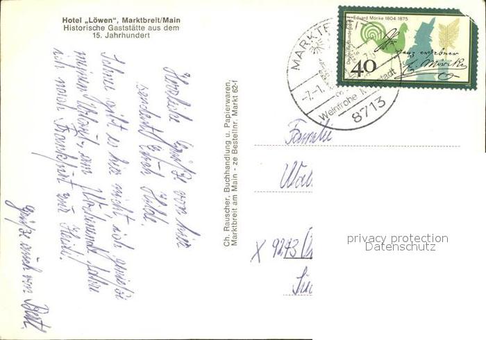 72423582 alte Postkarte Marktbreit Hotel Loewen postalisch gelaufen Erhaltung siehe scans KatCode: 11110009675147