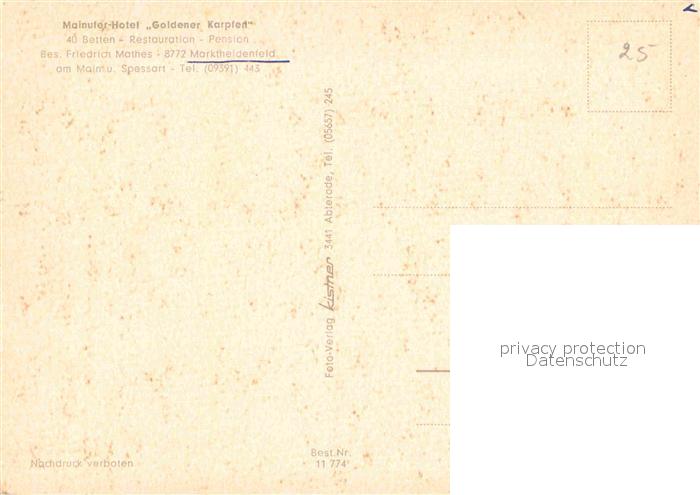 72729803 Marktheidenfeld Mainuferhotel Goldener Karpfen Anlegestelle Bruecke postalisch nicht gelaufen Erhaltung siehe scans [AndreD76] KatCode: 11110009677157
