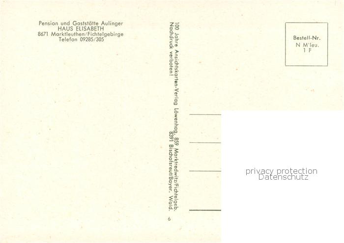 73776617 Marktleuthen Pension-Gaststaette Aulinger Aussenansicht Haus Elisabeth postalisch nicht gelaufen Erhaltung siehe scans [LiesaD40] KatCode: 11110009479135