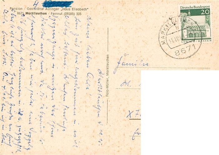 73936388 Marktleuthen Pension Gaststaette Aulinger Haus Elisabeth Gastraeume postalisch nicht gelaufen Erhaltung siehe scans [WerneD78] KatCode: 11110009479135