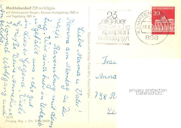 73125299 alte Postkarte Marktoberdorf Ammergauer Bergen Kenzen-Hochgebirge Tegelberg postalisch gelaufen Erhaltung siehe scans [NatalD47] KatCode: 11110009777151