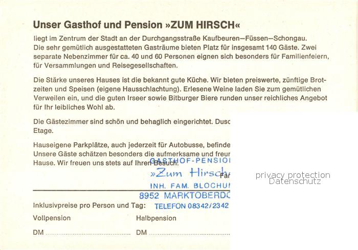 73175762 Marktoberdorf Gasthof zum Hirsch postalisch nicht gelaufen Keine Postkarte (siehe scan) Erhaltung siehe scans [NatalD47] KatCode: 11110009777151