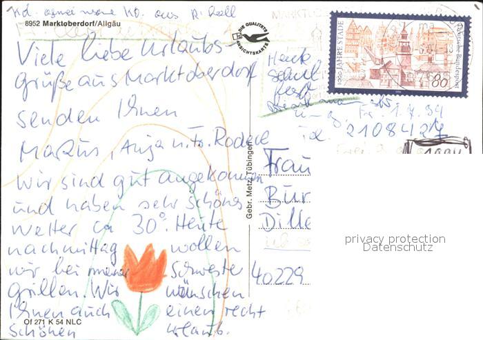 72522698 alte Postkarte Marktoberdorf Kirchen Panorama Kapelle postalisch gelaufen Erhaltung siehe scans KatCode: 11110009777151