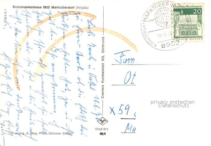 72946639 alte Postkarte Marktoberdorf Kreiskrankenhaus Fliegeraufnahme postalisch gelaufen Erhaltung siehe scans [FriedD77] KatCode: 11110009777151