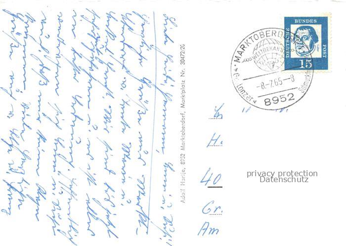 74043489 alte Postkarte Marktoberdorf Schule Rathaus Kreissparkasse Gasthof Sailerbraeu Marktplatz Brunnen Kirche Frauenkapelle altes Rathaus postalisch gelaufen Erhaltung siehe scans [FriedD77] KatCode: 11110009777151