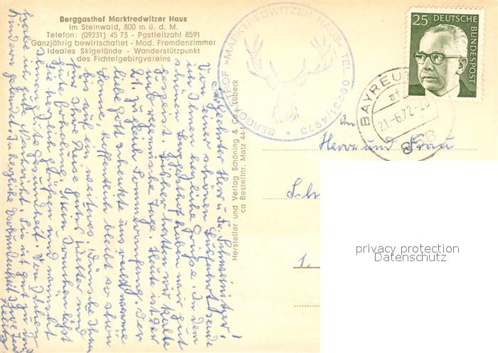 73608746 alte Postkarte Marktredwitz Berggasthof Marktredwitzer Haus postalisch gelaufen Erhaltung siehe scans [WerneD78] KatCode: 11110009479136