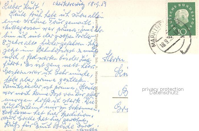 73734945 alte Postkarte Marktredwitz Gesamtansicht Ortszentrum Kirche Freibad Felsen postalisch gelaufen Erhaltung siehe scans [FriedD77] KatCode: 11110009479136