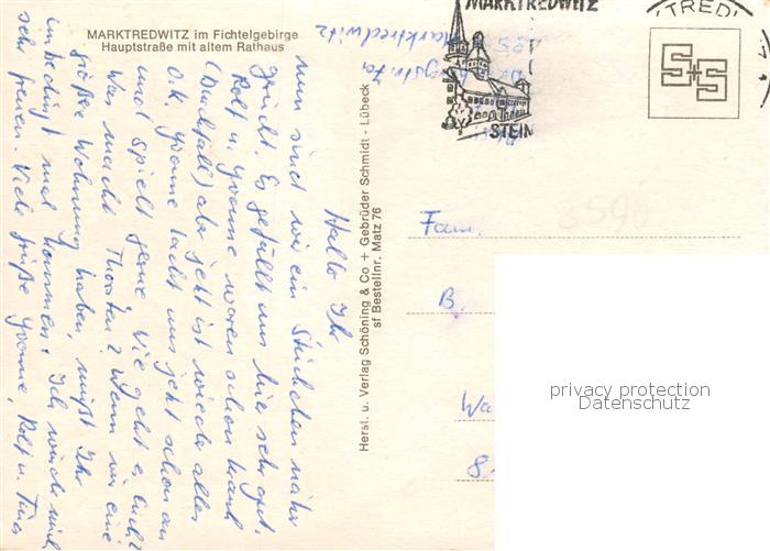 73873845 alte Postkarte Marktredwitz Hauptstrasse mit altem Rathaus postalisch gelaufen Erhaltung siehe scans [WerneD78] KatCode: 11110009479136