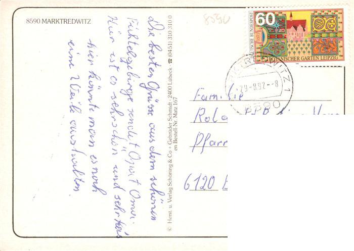 73936959 alte Postkarte Marktredwitz Kirche Ortspartie Kirche Bruecke postalisch gelaufen Erhaltung siehe scans [WerneD78] KatCode: 11110009479136