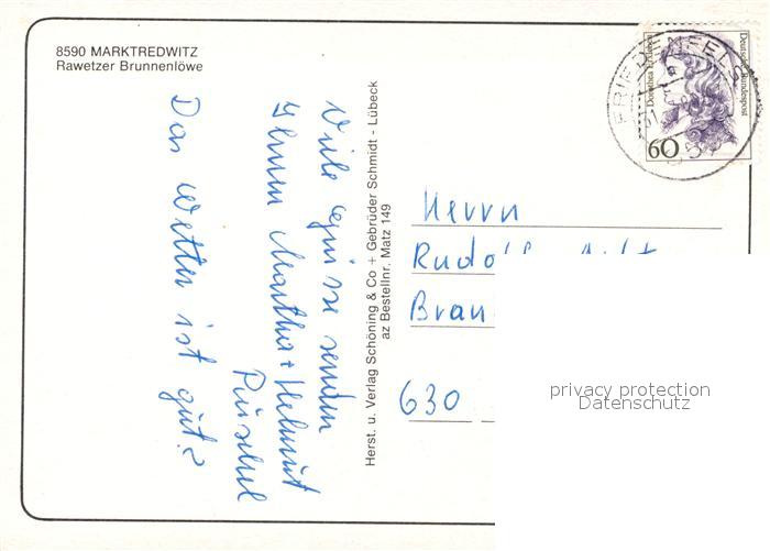 73271069 alte Postkarte Marktredwitz Rawetzer Brunnenloewe postalisch gelaufen Erhaltung siehe scans [WerneD78] KatCode: 11110009479136