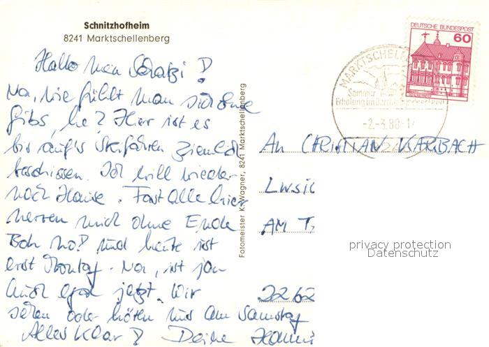 73653144 alte Postkarte Marktschellenberg Schnitzhofheim postalisch gelaufen Erhaltung siehe scans [WerneD78] KatCode: 11110009172124