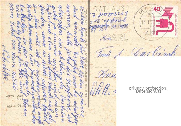 Marl Recklinghausen NRW Panorama Blick auf die Stadt postalisch gelaufen Fliegeraufnahme Erhaltung siehe scans [FriedD77] Fliegeraufnahme alte Postkarte Frie Katcode 11110005562024