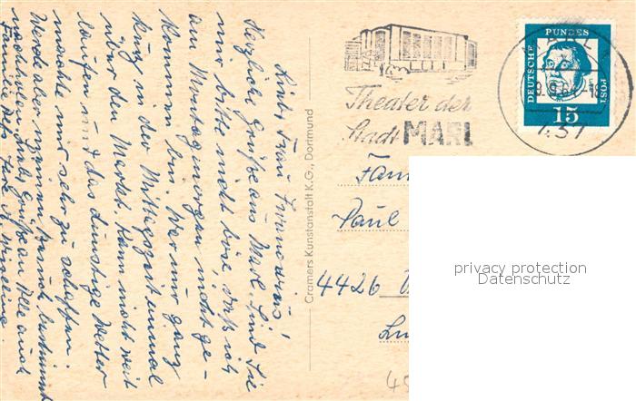 73595840 alte Postkarte Marl Westfalen Chemische Werke Zeche Auguste Viktoria Klinik Sparkasse Heim Freibad Muehle Feierabendhaus postalisch gelaufen Erhaltung siehe scans [FriedD77] KatCode: 11110005562024