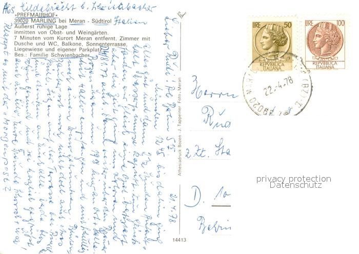 old postcard Marling Marlengo IT Prefmairhof Aussenansicht postalisch gelaufen Erhaltung siehe scans [LiesaD40]