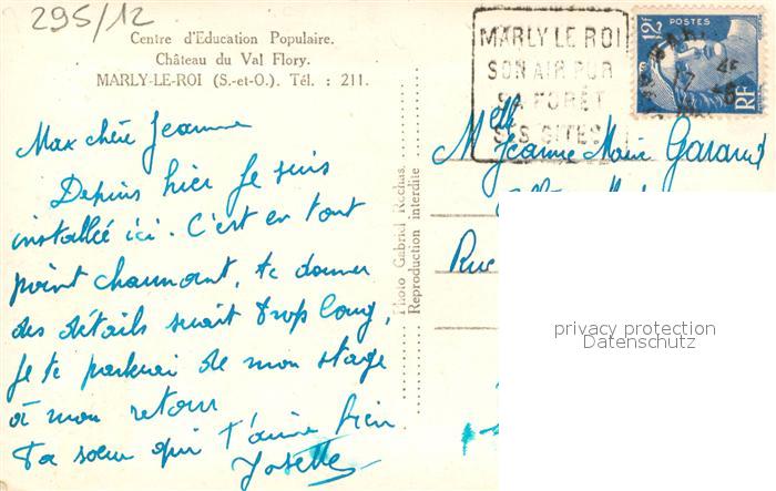13744540 Marly-le-Roi Centre d’Education Populaire Chateau du Val Flory postalisch gelaufen Erhaltung siehe scans [WerneD78] carte postale Wern Katcode 11170078378372