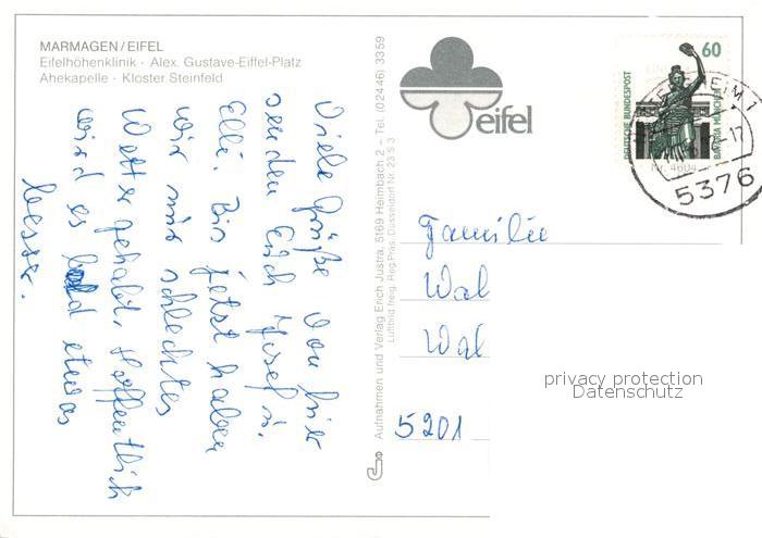 73107317 alte Postkarte Marmagen Eifelhoehenklinik Alex-Gustave-Eiffel-Platz Ahekapelle postalisch gelaufen Erhaltung siehe scans [NatalD47] KatCode: 11110005366032
