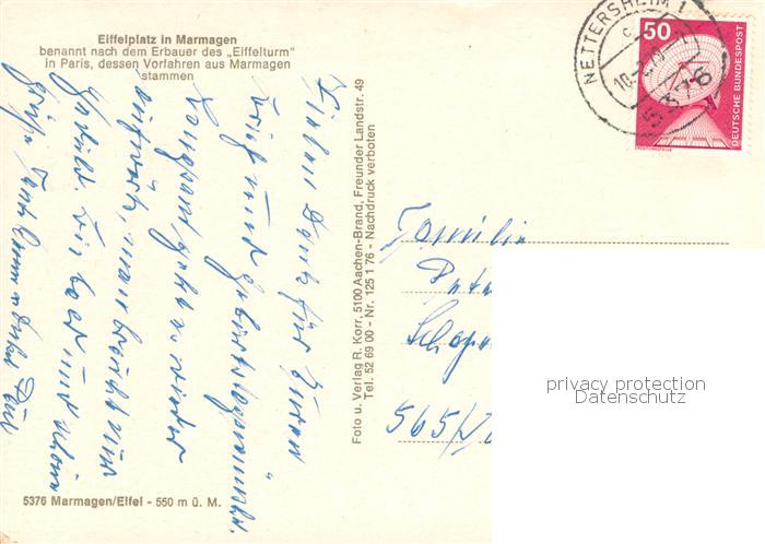 73774951 alte Postkarte Marmagen Eiffelplatz postalisch gelaufen Erhaltung siehe scans [WerneD78] KatCode: 11110005366032