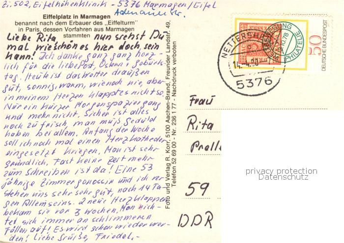 73671794 alte Postkarte Marmagen Kurgarten Altes Fachwerkhaus Eiffelplatz postalisch gelaufen Erhaltung siehe scans [WerneD78] KatCode: 11110005366032