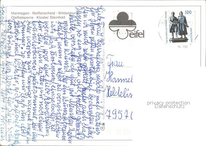 72253754 alte Postkarte Marmagen Reifferscheid Wildenburg Oleftalsperre Kloster Steinfeld Eifel postalisch gelaufen Erhaltung siehe scans KatCode: 11110005366032