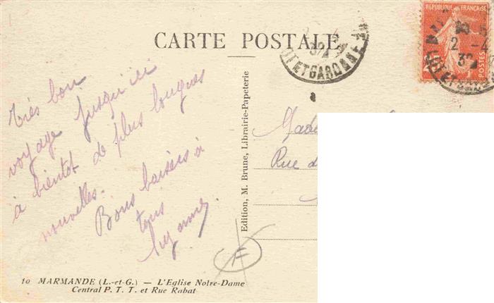13974007 Marmande 47 Lot-et-Garonne Eglise Notre Dame Central PTT et Rue Rabat postalisch gelaufen Erhaltung siehe scans [WerneD78] carte postale Wern Katcode 11170047247157