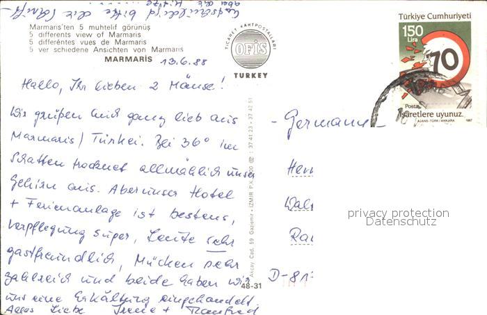 old postcard Marmaris Haeuser Markt Segelboote postalisch gelaufen