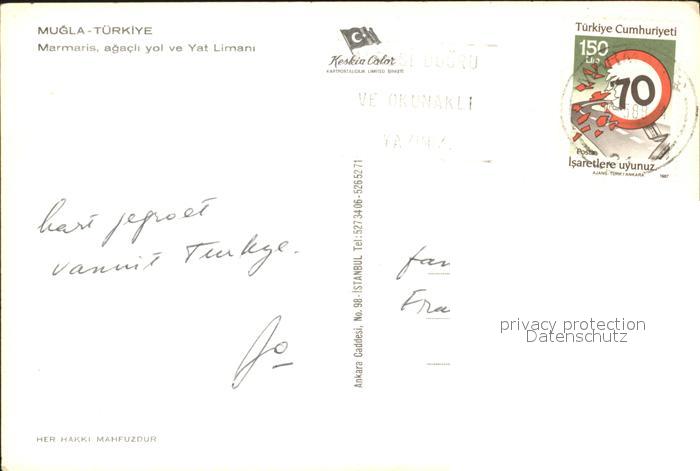 old postcard Marmaris Hafen Segelboote Boote postalisch gelaufen Erhaltung siehe scans
