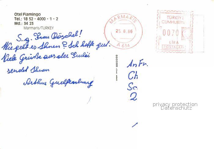 old postcard Marmaris Otel Flamingo Surfer postalisch gelaufen Erhaltung siehe scans [WerneD78]