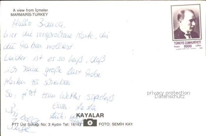old postcard Marmaris Segelboot Teilansicht postalisch gelaufen Erhaltung siehe scans