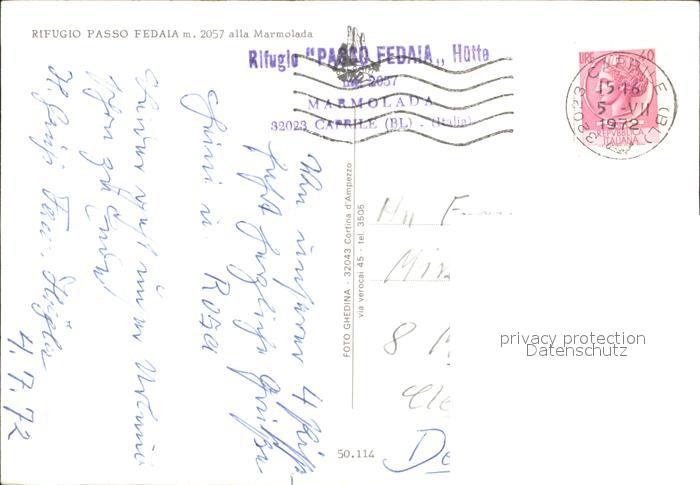 old postcard Marmolada Rifugio Passo Fedaia postalisch gelaufen Erhaltung siehe scans