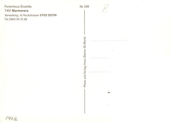 13889438 Marmorera GR Ferienhaus Scalotta postalisch nicht gelaufen Erhaltung siehe scans [WerneD78] KatCode: 11470100305950