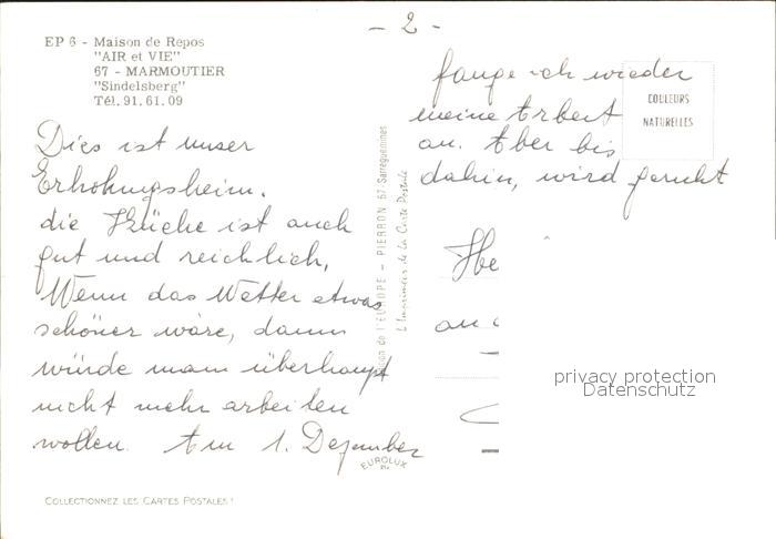 12128397 Marmoutier Maison de Repos Air et Vie Sindelsberg postalisch nicht gelaufen Erhaltung siehe scans KatCode: 11170067467283