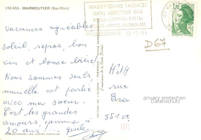 13617503 Marmoutier Vue partielle postalisch gelaufen Erhaltung siehe scans [WerneD78] carte postale Wern Katcode 11170067467283