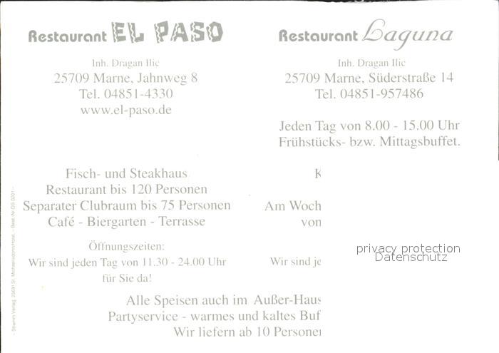 72030492 Marne Holstein Restaurant El Paso Restaurant Laguna postalisch nicht gelaufen Werbekarte (keine Postkarte) Erhaltung siehe scans KatCode: 11110001051072
