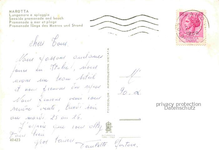 74026539 old postcard Marotta Fano IT Lungomare e spiaggia postalisch gelaufen Erhaltung siehe scans [FriedD77] KatCode: 11240