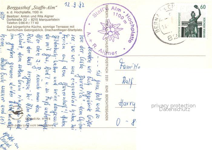 73159254 alte Postkarte Marquartstein Berggasthof Staffn Alm Friedensrath Gipfelkreuz Hochgern Aignerhof Piesenhausen postalisch gelaufen Erhaltung siehe scans [WerneD78] KatCode: 11110009189129