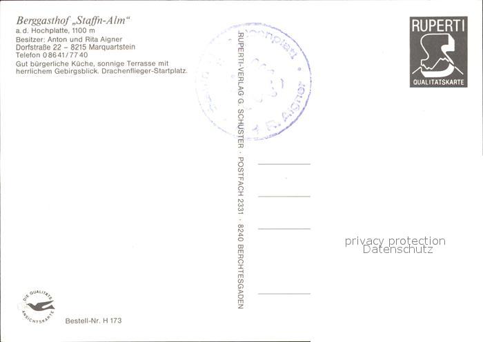 72547131 Marquartstein Berggasthof Staffn Alm Hochplatte Staffen Drachenflieger Startplatz postalisch nicht gelaufen Erhaltung siehe scans [WerneD78 kv017box] KatCode: 11110009189129
