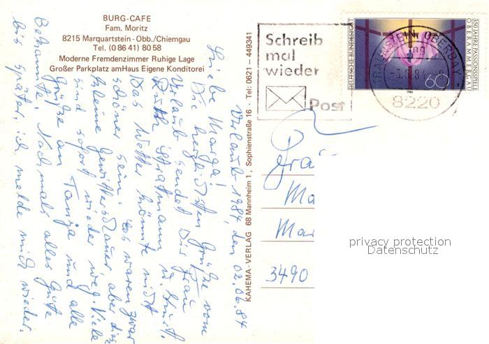 73542253 alte Postkarte Marquartstein Burg Cafe postalisch gelaufen Erhaltung siehe scans [KathaD81] KatCode: 11110009189129