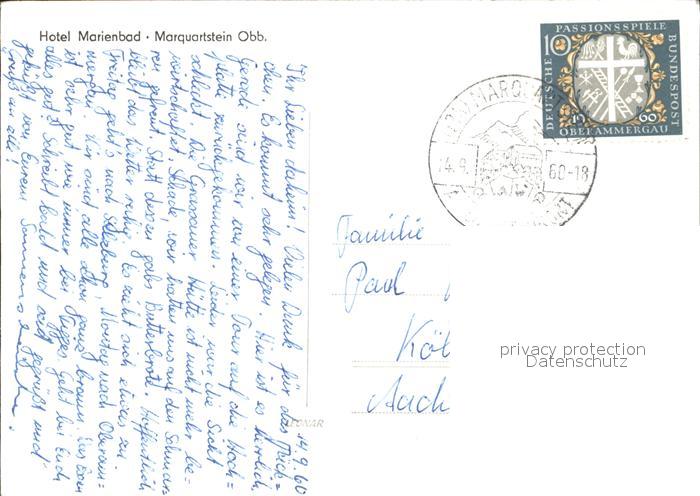 72189299 alte Postkarte Marquartstein Hotel Marienbad postalisch gelaufen Erhaltung siehe scans KatCode: 11110009189129