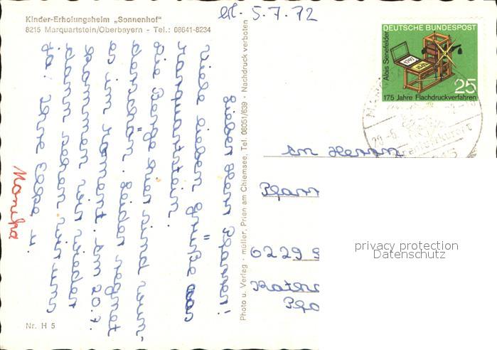 72552354 alte Postkarte Marquartstein Kinder Erholungsheim Sonnenhof postalisch gelaufen Erhaltung siehe scans [AntonD74] KatCode: 11110009189129