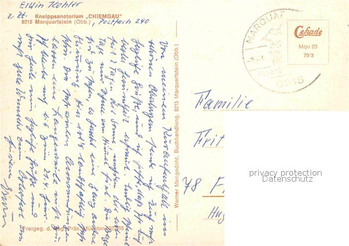 72693447 alte Postkarte Marquartstein Kneippsanatorium postalisch gelaufen Erhaltung siehe scans [KathaD79] KatCode: 11110009189129
