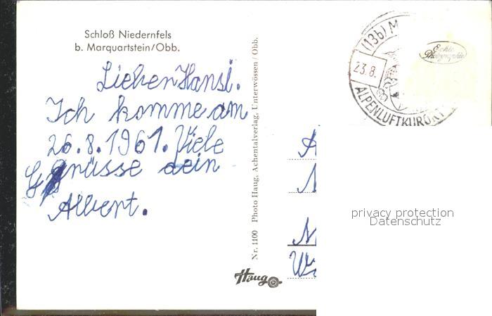 72134725 alte Postkarte Marquartstein Schloss Niedernfels postalisch gelaufen KatCode: 11110009189129