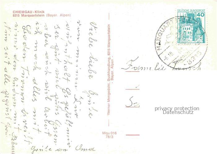 Marquartstein Traunstein Bayern Chiemgau Klinik Gastraum Bewegungsbad postalisch gelaufen Erhaltung siehe scans [WerneD78] alte Postkarte Wern Katcode 11110009189129