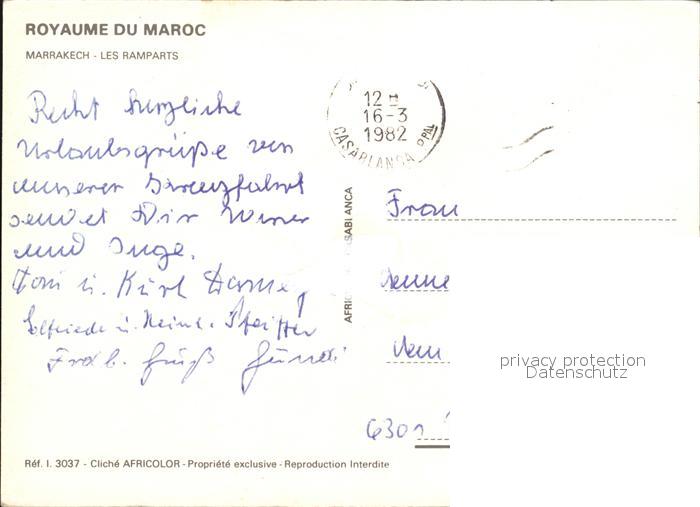 old postcard Marrakech Marrakesch Les Ramparts postalisch gelaufen Erhaltung siehe scans