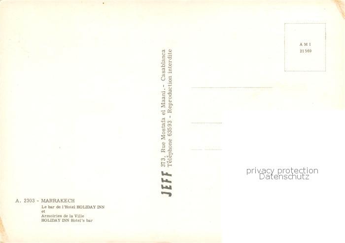 73852274 Marrakech Marrakesch Maroc Bar de l Hôtel Holiday Inn postalisch nicht gelaufen Erhaltung siehe scans [FriedD77] Frie Katcode 18300