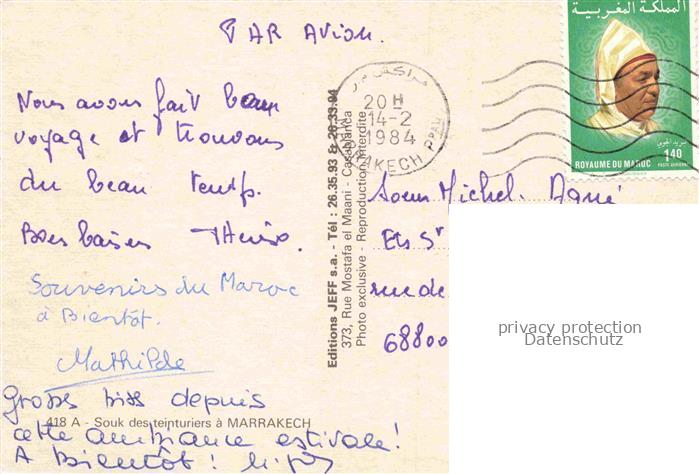 74013936 old postcard Marrakech Marrakesch Maroc Souk des teinturiers postalisch gelaufen Erhaltung siehe scans [WerneD78] KatCode: 18300