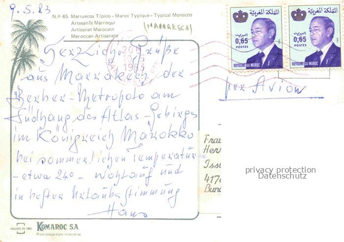 74013968 old postcard Marrakech Marrakesch Maroc Typical Marocco postalisch gelaufen Erhaltung siehe scans [WerneD78] KatCode: 18300