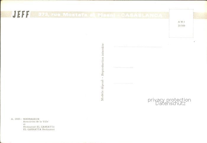 Marrakech Marrakesch Restaurant El Carnatta postalisch nicht gelaufen Erhaltung siehe scans