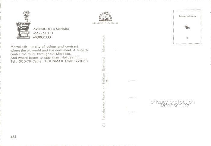 Marrakesch Marrakech Hotel Holiday Inn postalisch nicht gelaufen Erhaltung siehe scans
