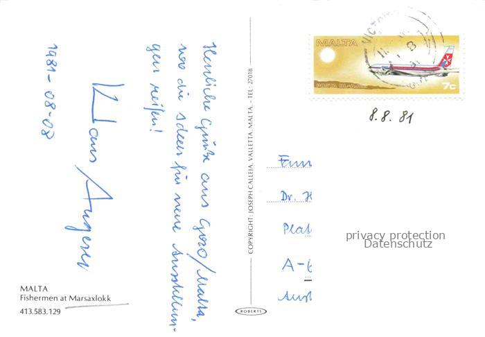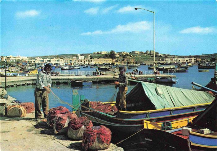74097617 old postcard Marsaxlokk Malta Fishermen at Marsaxlokk postalisch gelaufen Erhaltung siehe scans [WerneD78] KatCode: 11310